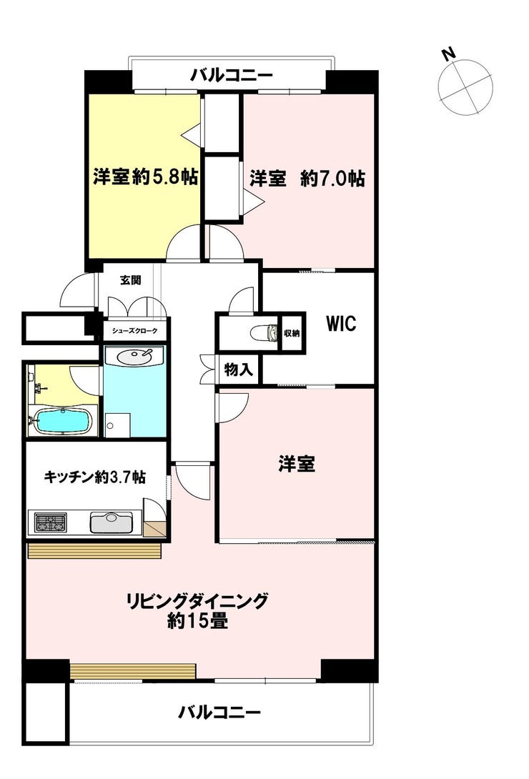 開放感あふれる15畳の広々リビング!光と風が通り抜ける、収納充実の3LDK。